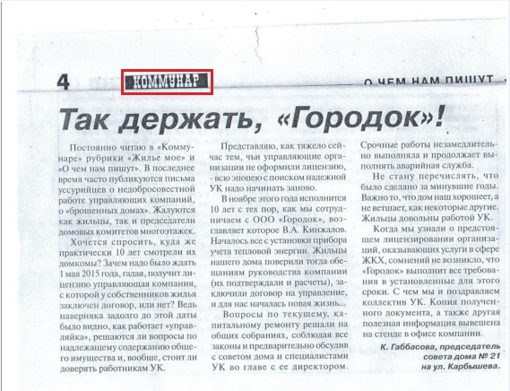 Компания «Городок» является членом Саморегулируемой организации некоммерческого партнерства по защите прав и законных интересов жилищно - коммунальных организаций «ЖКХ - Групп», г.Хабаровск, www.gkhgroup.ru